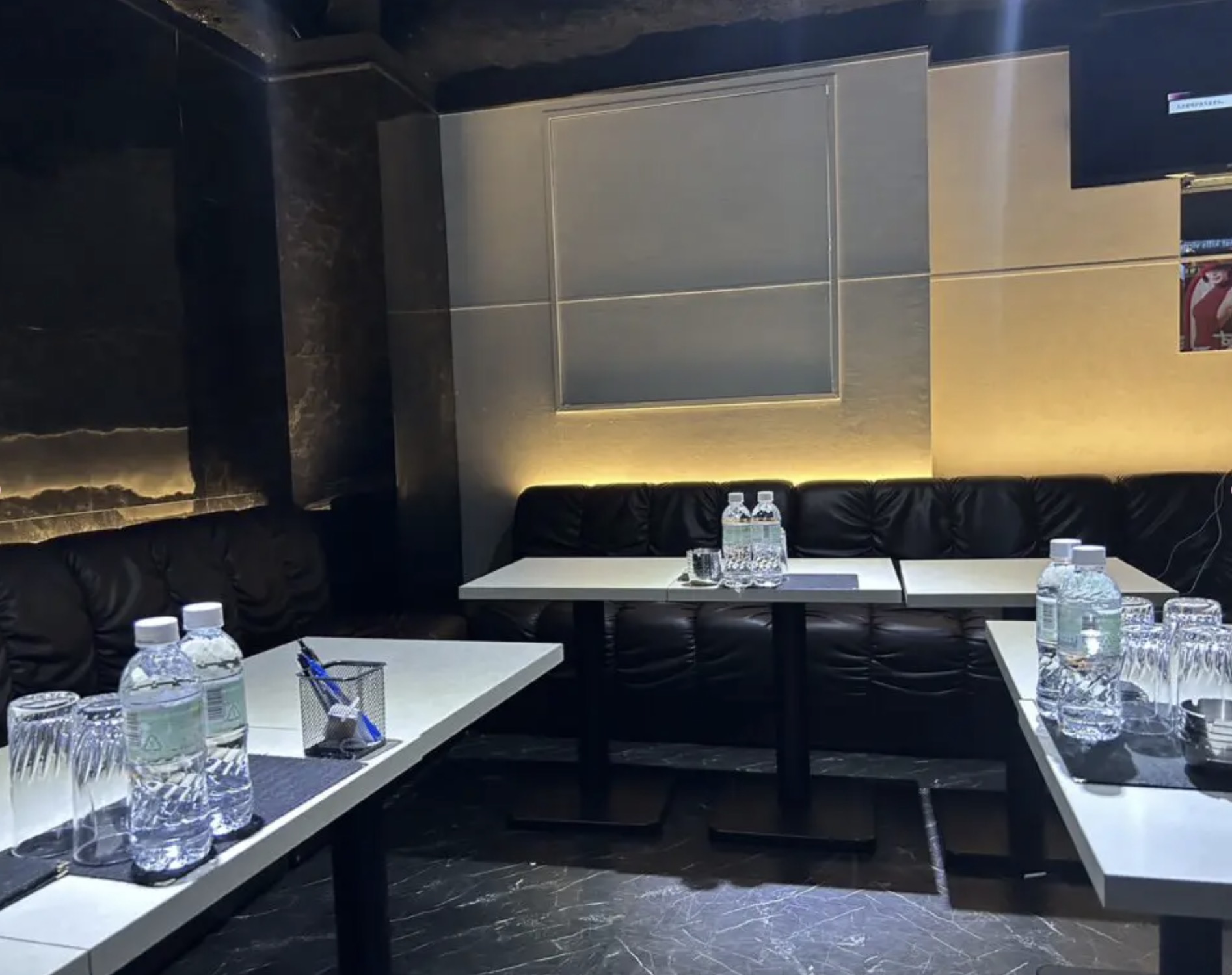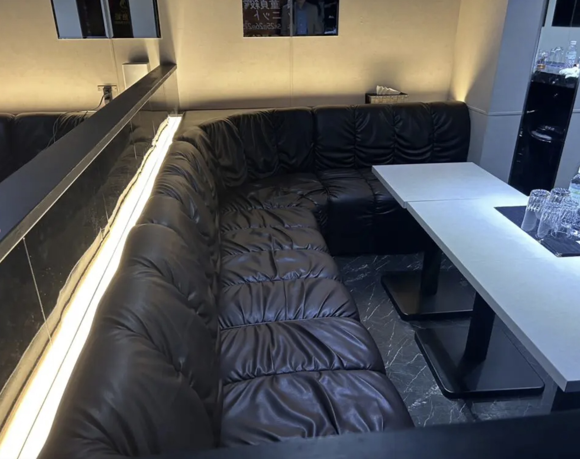 テーブル席が7卓、カウンター5席に加えてVIPルームも1部屋あり、1日のキャストの出勤人数は8名~10名ほど。スナックとしてはやや大きめのお店です。